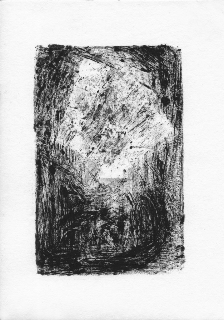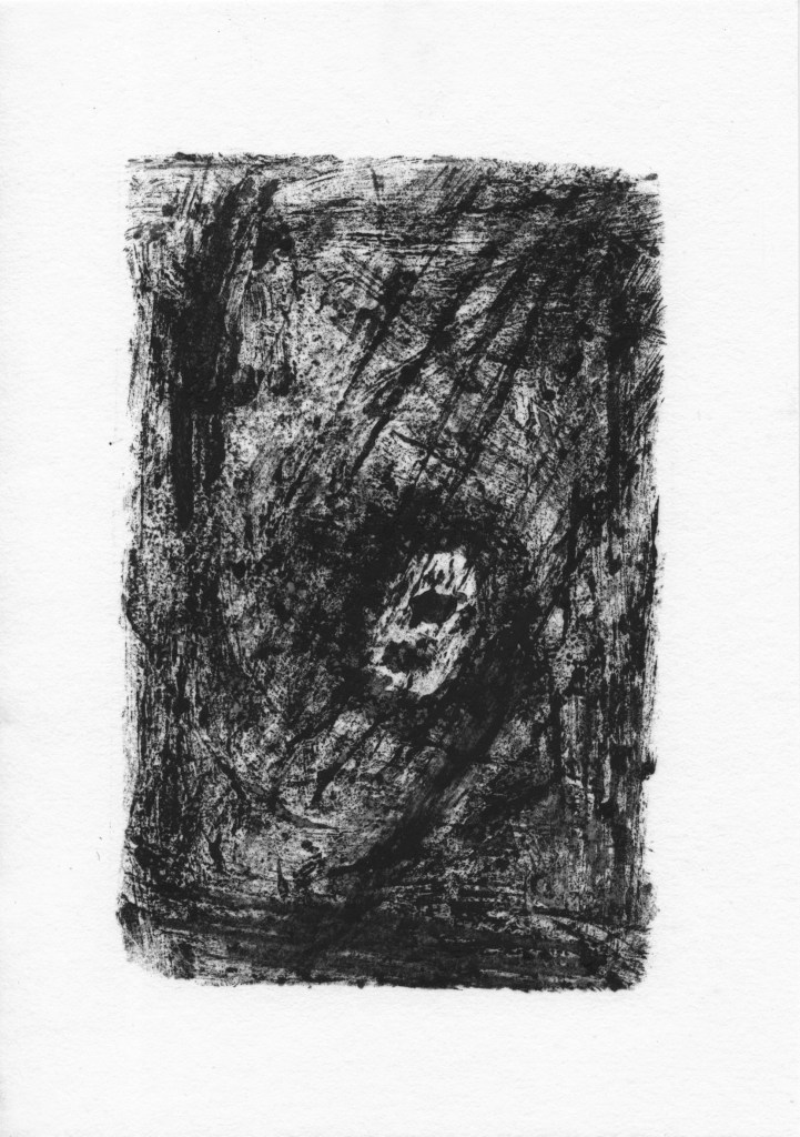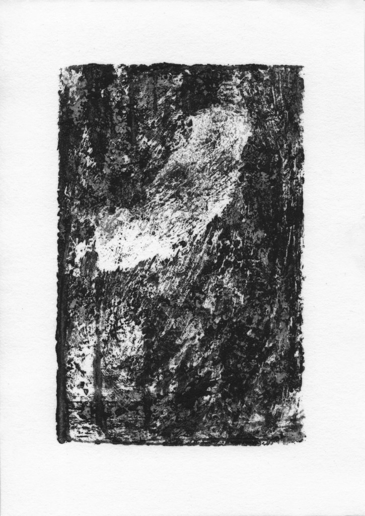 Die 32 Monotypien, die in den 32 Tagen des Shutdowns entstanden, sind das Ergebnis eines täglichen Rituals des Künstlers, der mehrere Stunden damit verbrachte, Müll zu sammeln, der achtlos in die Natur geworfen wurde. Diese symbolische Handlung des Aufräumens und Sammelns verweist auf den Versuch, Ordnung in eine chaotische und isolierte Welt zu bringen, und wird zugleich zur Metapher für die Wiederherstellung von Normalität und menschlicher Verbundenheit.