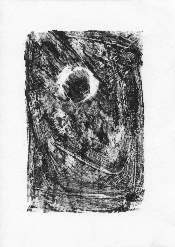 Das Löschpapier, das traditionell in Schulheften verwendet wird, wird hier als Symbol für das ausgelöschte soziale Leben der Kinder während dieser Zeit verwendet. In der Wahl dieses Materials als Träger für die Monotypien liegt eine bewusste Verbindung zwischen dem schulischen Alltag, der während des Shutdowns zum Stillstand kam, und der künstlerischen Verarbeitung dieser Erfahrung.