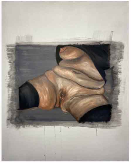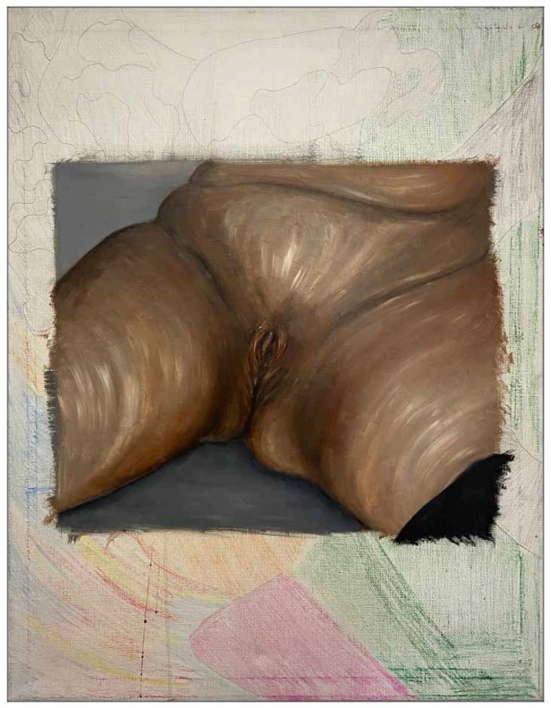 Die Wahl der Größe von Gustave Courbets „Der Ursprung der Welt“ ist dabei kein zufälliger Akt, sondern eine bewusste Entscheidung, die die Arbeit in einen Dialog mit der Kunstgeschichte stellt. Courbets Werk war eine radikale Darstellung des Ursprungs des Lebens, die den Betrachter zwingt, sich der Realität des Körpers und der Sexualität zu stellen. In der aktuellen Arbeit wird diese Dimension erweitert: Es geht nicht nur um den Körper als Ursprung, sondern um das Bewusstsein, das sich aus diesem Ursprung entwickelt.