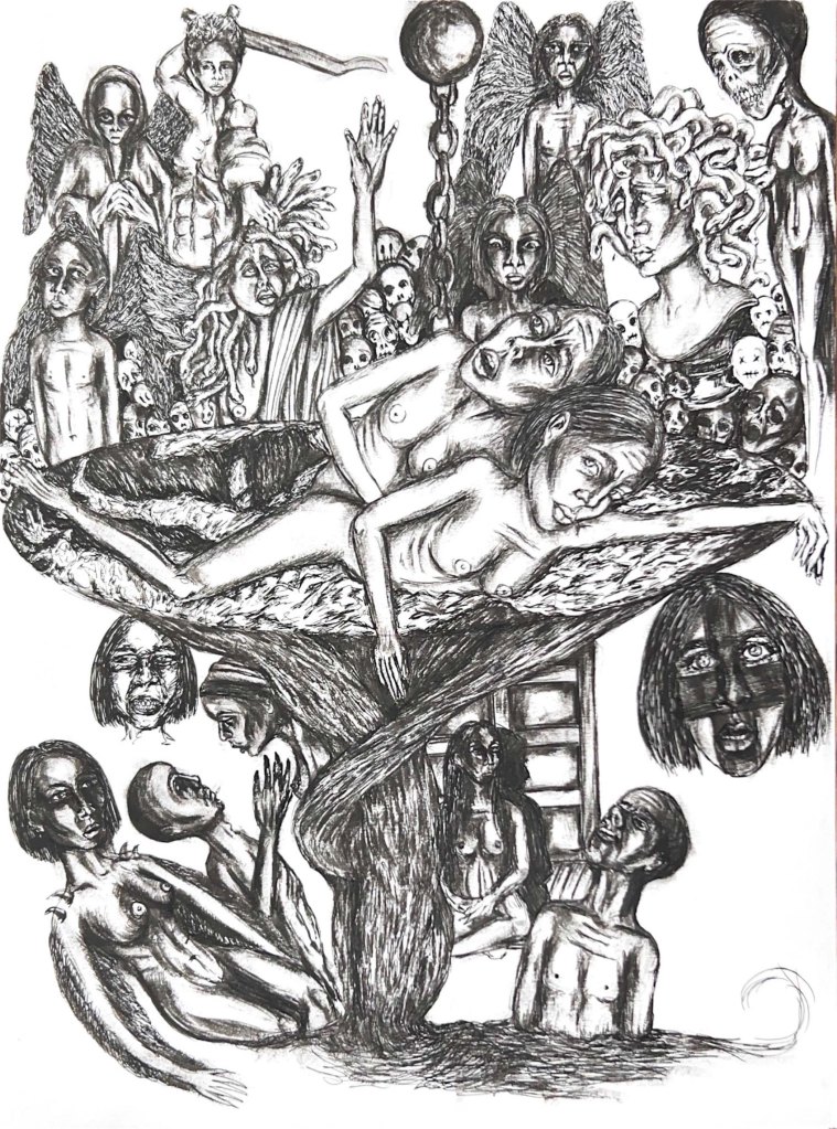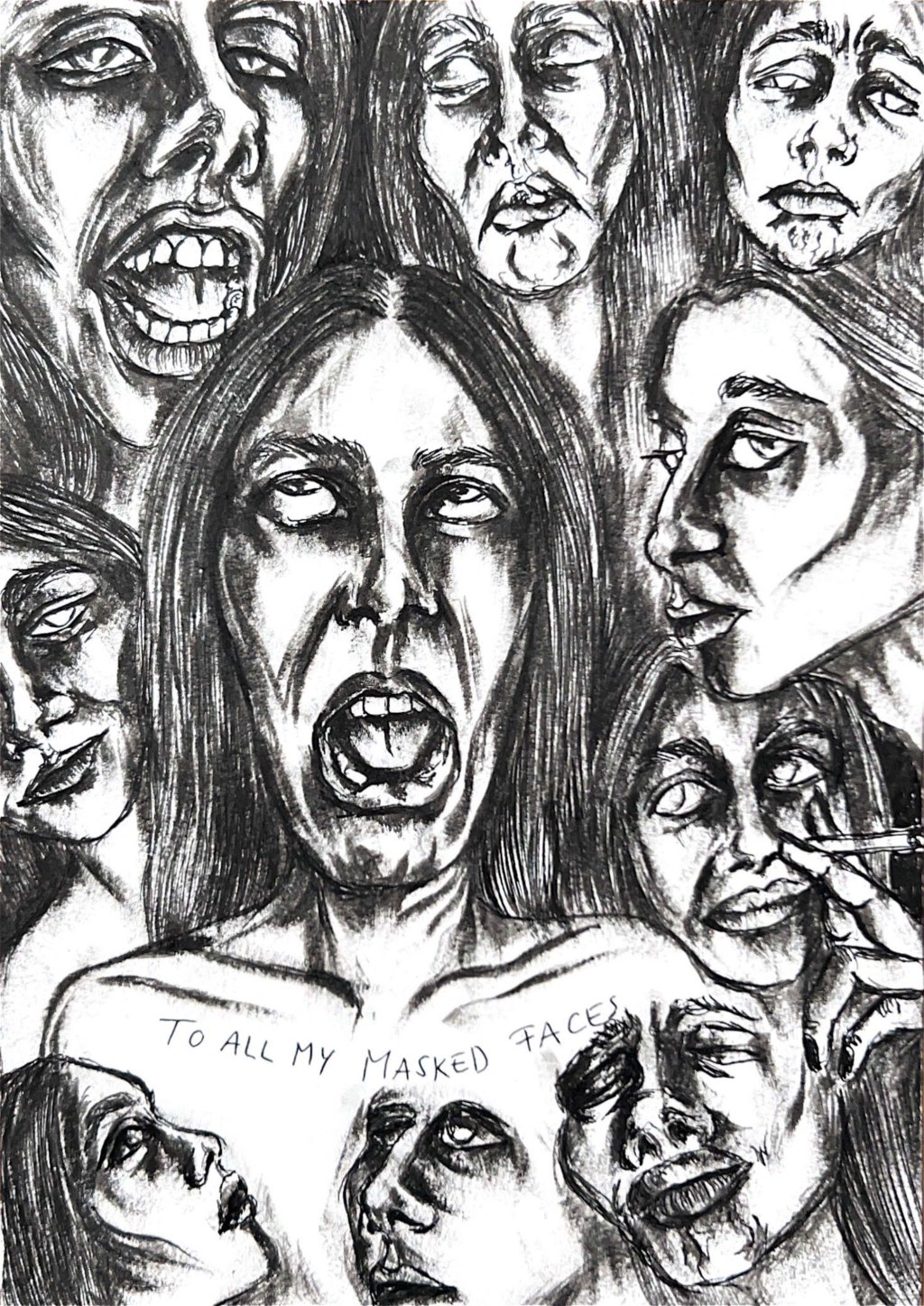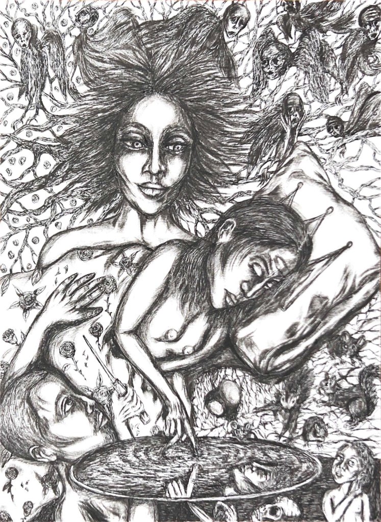 In dieser seriellen Arbeit beschäftige ich mich mit der Paralyse. Zwei Wochen war ich jede Nacht „gefangen“ in Paralysen-Träumen, also begann ich mich über dieses doch eher ungewöhnliche, aber nicht allzu seltene Thema, zu informieren. Als Essenz meiner Träume und Gefühlszustände sowie meiner Recherche entstehen schwarz-weiß Zeichnungen mit Tusche. Eine alte Tradition ist es, Träume, vor allem Albträume aufzuschreiben, um sie zu verbrennen oder um sich danach an sie zu erinnern. Da Träume sich nur schwierig einfangen lassen und ich als Künstlerin in Bildern denke, biete ich dem Betrachter einen Einblick in die tiefsten Vorgänge meiner Seele.